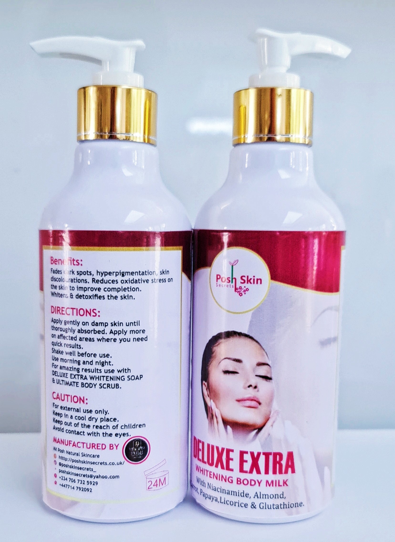 For amazing results, use with DELUXE EXTRA WHITENING SOAP & ULTIMATE BODY SCRUB.